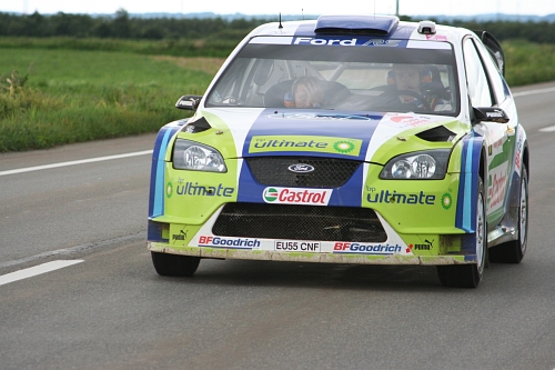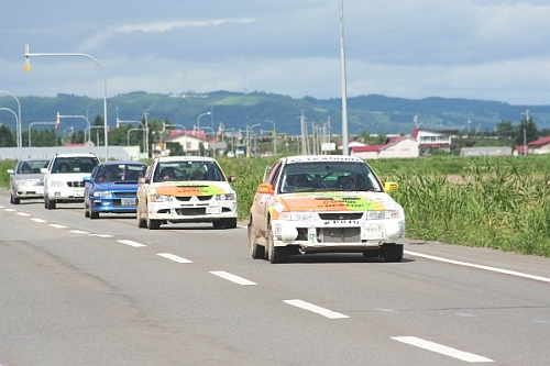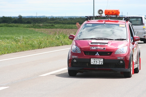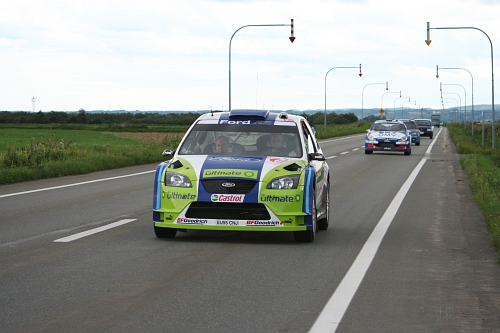 午前のループを終えて、サービスパークへ戻るラリーカー