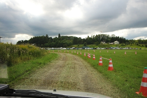 幕別の駐車場へ、下が土だと、
