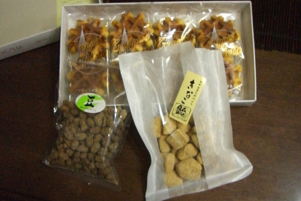 − おみやげ写真 − きなこ飴と黒糖まめ(手まめ館) トラピスト・ガレット(那須高原SA)