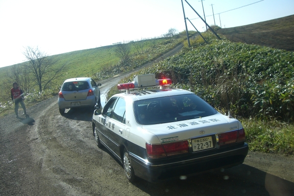 パトカー先導でサホロスキー場へ