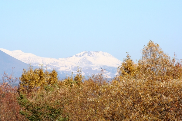 すでに雪景色の大雪山方面かな?