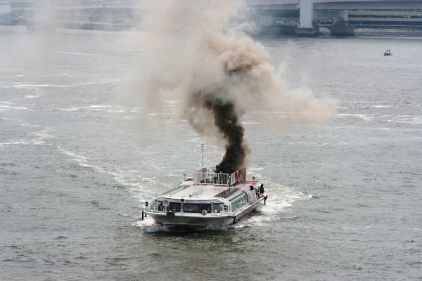 水上バスに火災発生!
