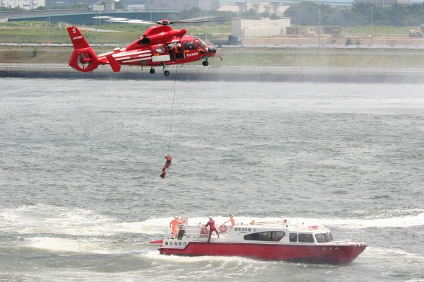 船から落水した人を引き上げて