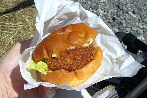お昼は昨年と同じ、手まめ館のメンチカツバーガー