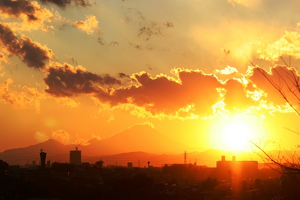 夕日と富士山