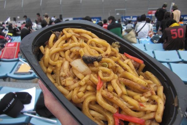 スバル・ファンシートで、今日のB級お昼「岡山ホルモン焼きそば」中