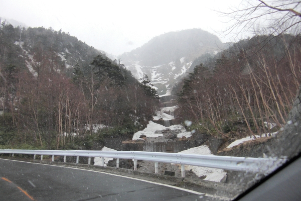金精峠中腹で、雪になってきました