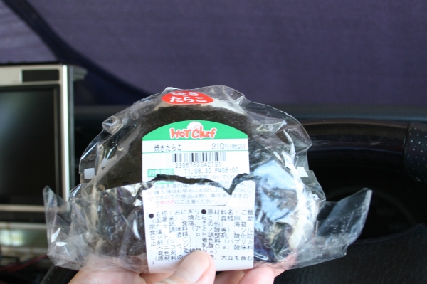 ここで、セイコマの「焼きたらこ」おにぎりでお昼にします