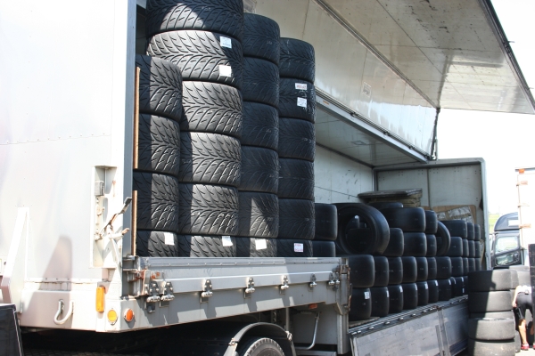 WRCみたいにコントロールタイヤじゃないからいろんなトコロに山積み