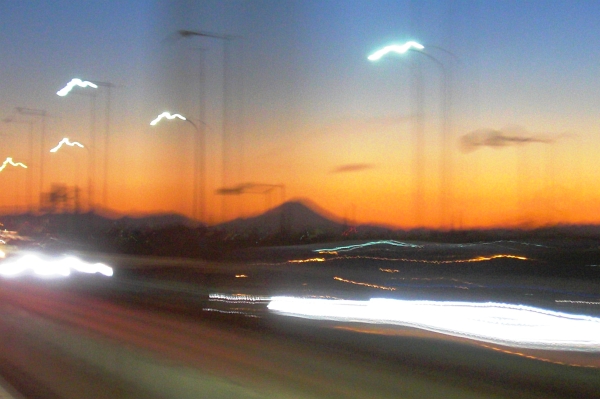 夕日に浮かぶ富士山のシルエット