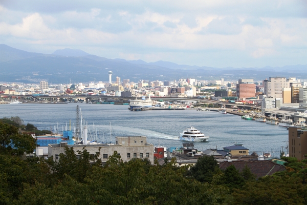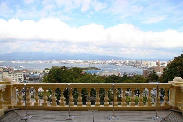 2階のバルコニーからみた、函館湾