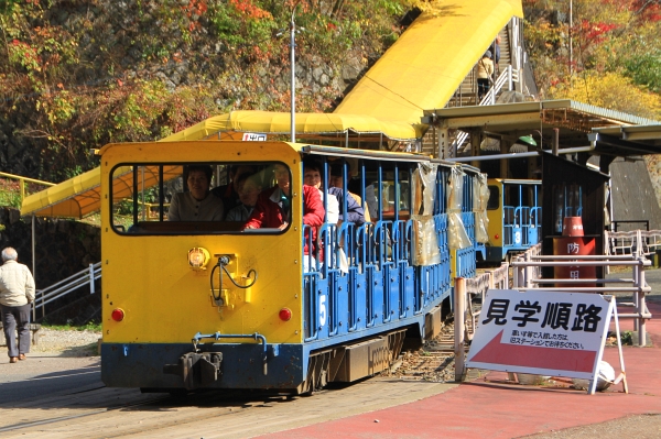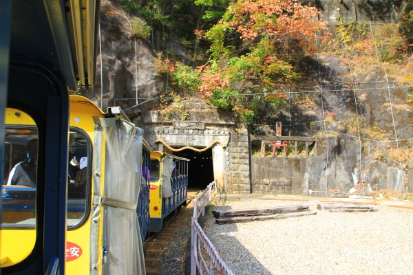 では、トロッコ列車に乗って、出発〜