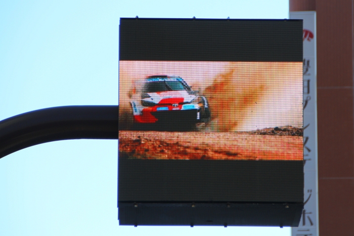豊田スタジアムに向かう歩道の電光掲示板